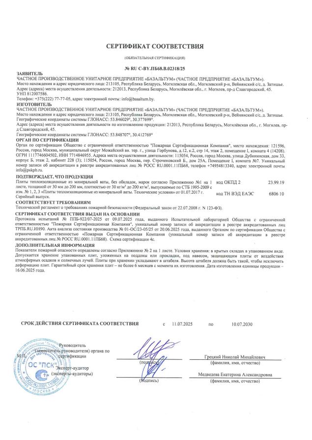 • Производственная площадка: г. Могилёв, Республика Беларусь.